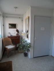 De binnenruimte bestaat uit een kleine ontvangst- en wachtruimte met sanitair, een gespreksruimte, annex kantoor en een oefen-/werkruimte (7,5 bij 5m).
